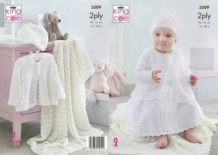 King Cole Pattern 5509 2ply Matinee Jacket, Shawl and Hat![]()  - Regular price