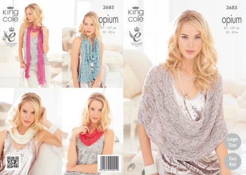 King Cole Pattern 3685 Scarf, Snoods, Poncho and Wrap