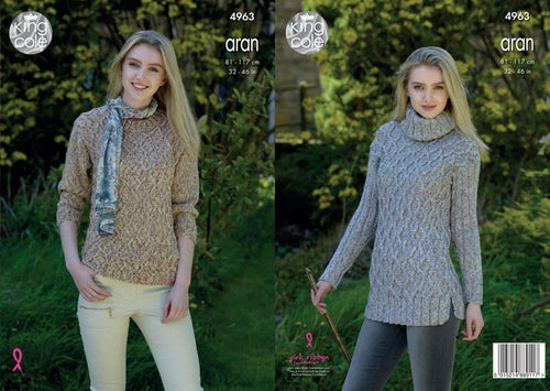 King Cole Pattern 4963 Aran Sweater and Cardigan